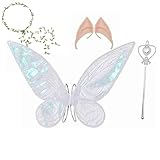 - Material brillante de alta calidad: las alas de hada para mujer están hechas de organza, que tiene un efecto de destello mágico. Combina con las orejas de elfo realistas y el palo de estrella, como...